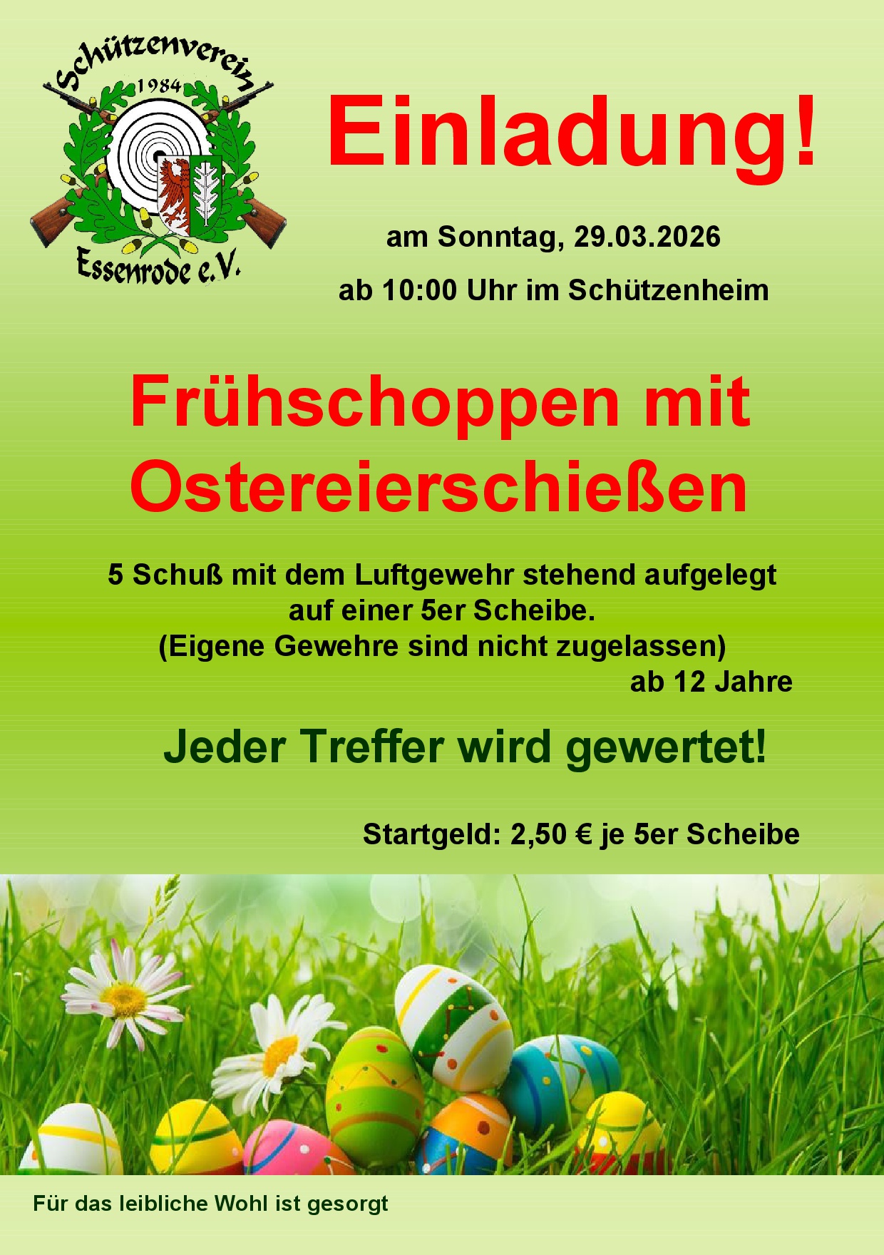 Der Schützenverein Essenrode lädt zum alljährlichen Frühshoppen mit Ostereierschießen am Sonntag, den 29.03.2026 ab 10 Uhr,...