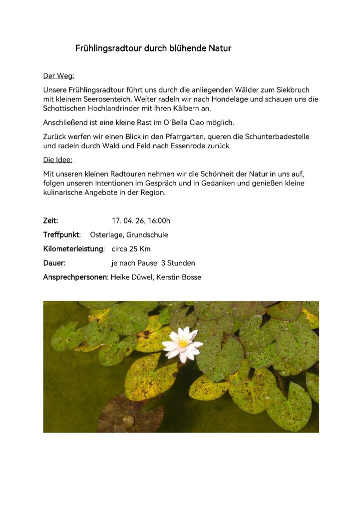Es ist endlich wieder soweit und die diesjährigen Radtouren beginnen mit einem Ausflug durch die hiesige...