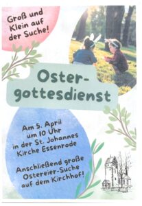 Der Schützenverein Essenrode lädt zum alljährlichen Frühshoppen mit Ostereierschießen am Sonntag, den 29.03.2026 ab 10 Uhr, ein.